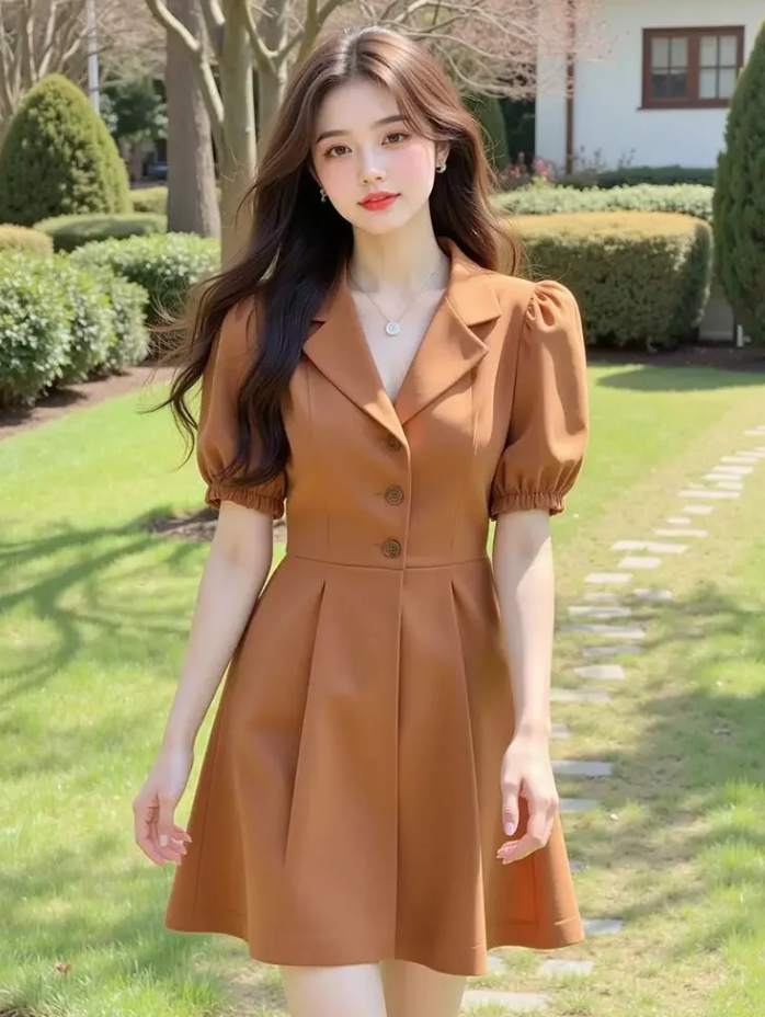 Elegant Puff Sleeves Waist-hugging And Slimming Versatile Blazer Mini Dress