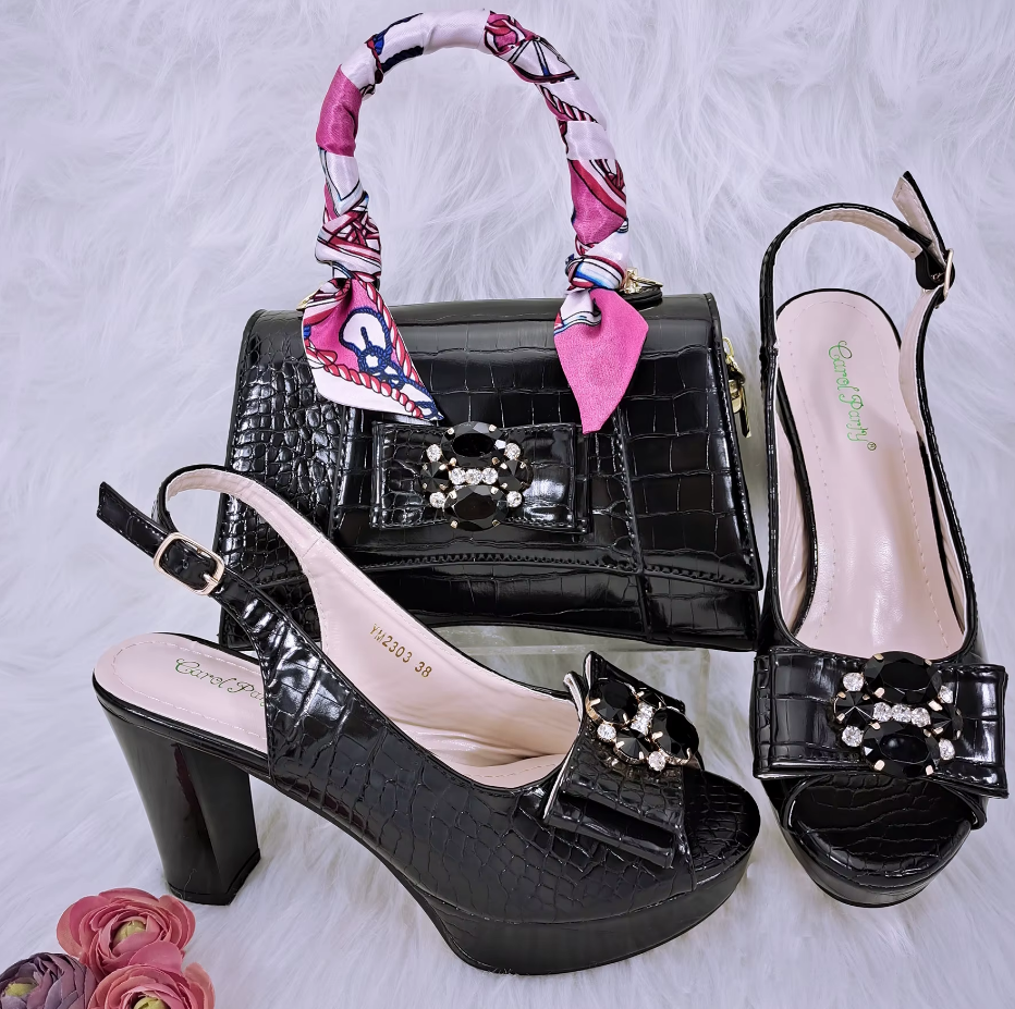Classics Style Platform Design Rhinestone Decoration Party Wedding Shoes And Bag