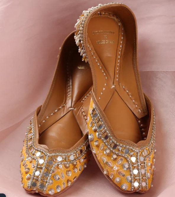 This gorgeous pastel yellow jutti can be adorned with any fun day outfits and make for the perfect. pair for all those haldi functions you have to attend.